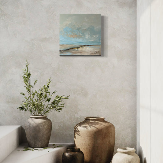 Designed to evoke a soothing energy, these works bring balance and elegance to any space. Whether you're drawn to the depth of the blues, the warmth of the earth tones, or the luminosity of the gold accents, each piece offers an escape into a world of calm contemplation and layered discovery.